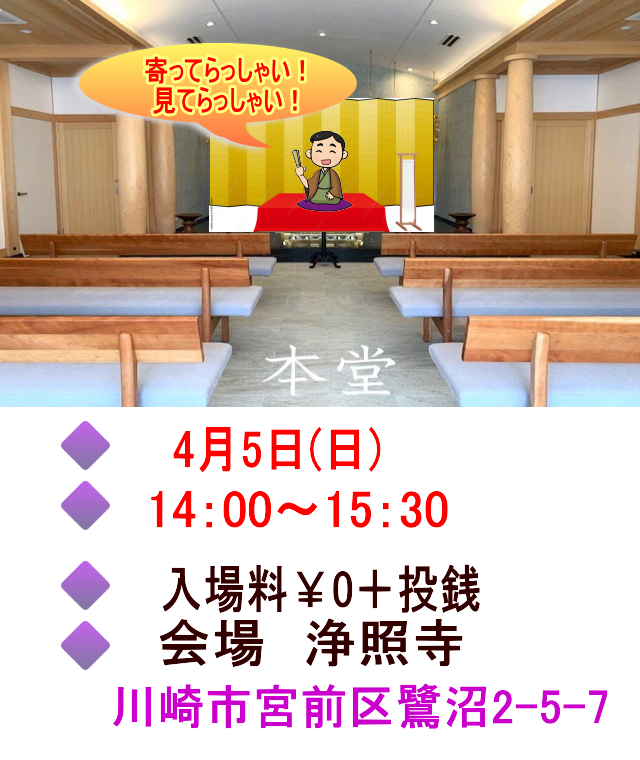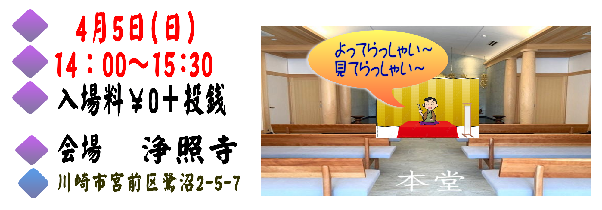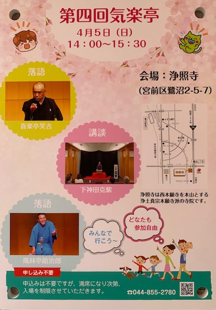 落語の歴史を紐解いてみると、元々はお寺の本堂でお坊さんが檀家さんに話をする説法がその由来であったそうです。そこで落語の会場を演芸ホールから元々の起源であったお寺の本堂に戻して、演芸場に行ったことがない方々にも近場で話芸を楽しんでもらおうと寺の住職が考えた活動が気楽亭
